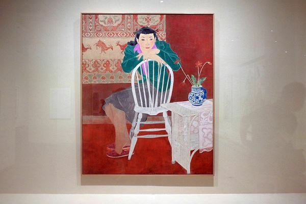 17才になった朝倉は、日本画家・伊東深水のもとで日本画を学び始め、19才で文部省美術博覧会(新文展)に初入選するなど、たちまちのうちに才能を開花させる。《更紗の部屋》は20歳のときの作品だ。