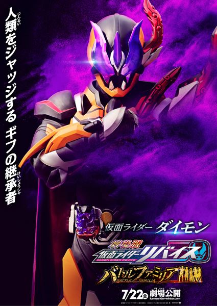 この度、本作のキャラクターポスターが公開。『劇場版 仮面ライダーリバイス バトルファミリア』からは、仮面ライダーリバイ、仮面ライダーバイス、仮面ライダーライブ、仮面ライダージャンヌ、仮面ライダーデストリーム、仮面ライダーダイモン、仮面ライダーキマイラの計7体のキャラクターポスターがお披露目。『仮面ライダーリバイス』の集大成を感じさせる、漆黒の背景に、各仮面ライダーそれぞれのイメージカラーの疾風から現れる姿は、圧巻のカッコよさが際立つビジュアルとなっている。