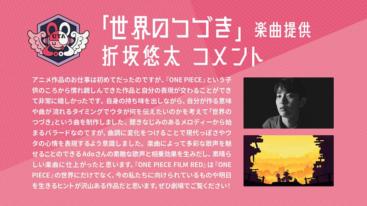 ウタが魅せる新たな世界観のバラードナンバー 『ONE PIECE FILM RED』折坂悠太提供の劇中歌「世界のつづき」ティザーMV公開