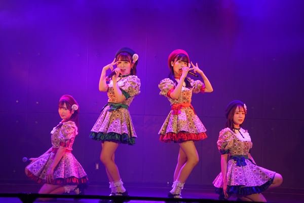 MCで峯吉愛梨沙が、「花は誰のもの?初日公演、始まりました」と話すと大きな拍手が。香川県出身の福田朱里は「みなさんようこそ香川県へ! ここ香川県で皆さんと初日が迎えられて本当に嬉しいです」とコメント。今回の出演メンバーの自己紹介を行いユニットブロックへ。「夏の“好き”はご用心」「そして人間は無力と思い知る」「Sure、じゃあね」「ポニーテールをほどいた君を見た」と4曲続けて披露。