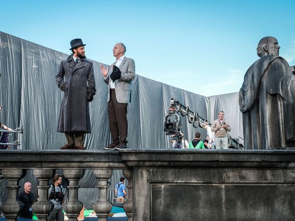 撮影中のデイヴィッド・イェーツ監督(写真左) (c)2018 Warner Bros. Ent. All Rights Reserved. Harry Potter and Fantastic Beasts Publishing Rights (c)J.K.R.