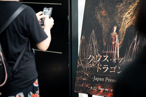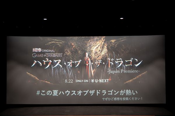 本編が始まると『ゲーム・オブ・スローンズ』ならではの映像美とこれまで描かれなかったターガリエン家を中心とした怒涛の展開に会場の緊張感が一気に高まる。終了後、場内では拍手が巻き起こり、日本最速で第1話を観た観客からは「変わらず圧倒的のクオリティ。すでに続きが見たい」「ドラゴンの迫力がすごい。圧巻のスケール!」「濃密すぎて1話目だけでも最高すぎる!月曜日が待ちきれない」など、興奮冷めやらぬ熱いコメントが寄せられた。