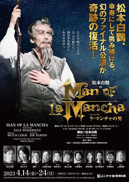 上演決定に際し白鸚は、「生涯で一番嬉しい誕生日になりました。初演は二十六歳、ブロードウエイに行ったのは二十七歳でした。それから五十三年…。万感の思いです。前回中止の時、劇場まで足をお運び下さったお客様のため、『ラマンチャの男』の火を、今日まで灯し続けて下さった皆様のため、初日から千穐楽まで一所懸命勤めるつもりです。」と本作に懸ける思いを語っている。