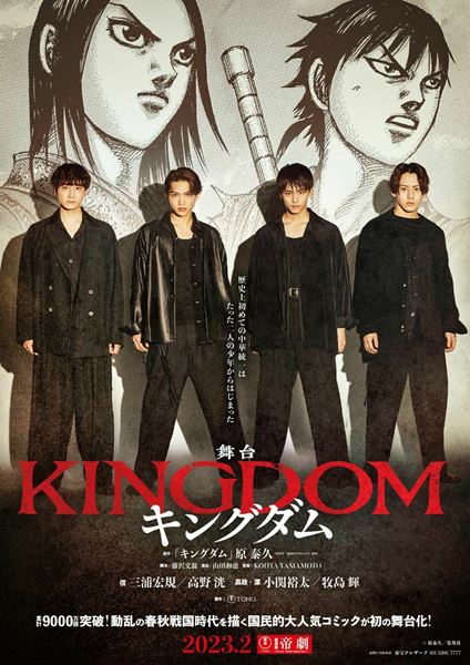 すべて見る2023年2月帝国劇場にて上演される舞台『キングダム』の信役と嬴政(えいせい)・漂役のキャストが発表された。