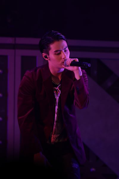 オープニングとなった1曲目は「So Woo」。連続配信リリース中の彼らが、8月にリリースした楽曲となる。ピンクとブルーのスポットライトが作り出す空間はシャープだが、グッと温度を上げてくれるパワーがある。サングラスをかけているメンバーがいるのも、なんだかムードがある。そして、冴えわたる田中洸希のビートボックス。続けて、6月にリリースされた「Crusin’」でさわやかに。そんな楽曲だからこそ、ジャン海渡と松村和哉のラップが体に響く。
