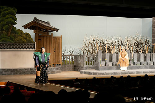 舞台は十太夫が介錯をつとめた、赤穂義士堀部安兵衛(市川猿之助)の切腹の回想場面から始まり、物語の展開に深くかかわる印象的な場面から一転、舞台は赤穂浪士の七回忌の墓参に多くの人が行きかう泉岳寺に。十太夫は下級武士に似合わしくない身形で登場し、偶然居合わせた松平家目付役の杉田五左衛門に咎められ…。松平隠岐守邸奥庭の場面では、松緑演じる十太夫の苦悩を滲ませつつも武士としての覚悟を感じる姿、絞り出すような熱のこもったセリフ一言一言が人々の心を揺さぶる。そして舞台上の緊迫感が劇場空間を埋めると、観客は固唾をのんで十太夫の物語を見守った。