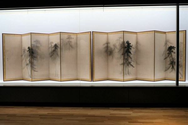 展覧会は2部構成。第1部「東京国立博物館の国宝」では、「絵画」、「書跡」、「東洋絵画」、「東洋書跡」、「法隆寺献納宝物」、「考古」、「漆工」、「刀剣」の8つの分野で89件の国宝を公開する。会場に入り、まず目にするのが長谷川等伯が靄に包まれて見え隠れする松林を描いた《松林図屏風》。トーハクでは正月に展示することが多い、人気の国宝だ。