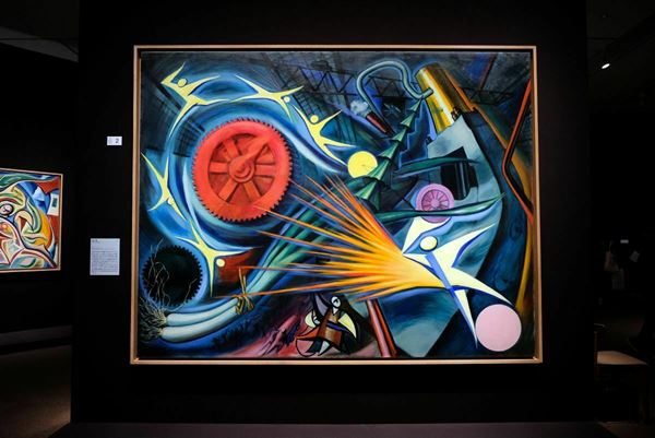 東京展は制作年代順に6章構成をとる。しかし、第1章に入る前に通されるのは岡本太郎のエッセンスが詰まった作品群がならぶ空間。代表作の《森の掟》や《重工業》などが展示された空間は、特に順路を定められていない。鑑賞者は制作の背景や文脈を気にすることなく、自由に岡本太郎の作品そのものと向き合うことができる。《重工業》は1949年、《森の掟》は1950年に東京都美術館で開催された二科展にそれぞれ出品された作品だ。