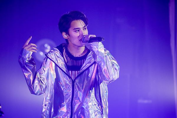体に響くようなHAYATOのラップから始まる「Category」。「Dark knight」では、メンバーがステージから降りて、客席と同じ目線でパフォーマンスをし、SWAGを沸かせた。ハードな楽曲が続く中、「L.O.C.A」ではしっとりと。ハードなラップと、繊細なボーカルのコントラストで会場を魅了した。