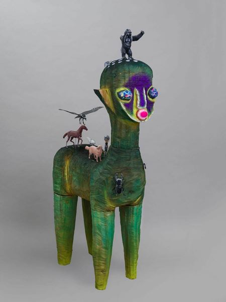 子供が描くようなシンプルで記号的な顔の形から始まり、「ひとがた」を手がかりとして制作し続けてきた加藤。絵画だけでなく、木や石などの自然物、ソフトビニールやプラスチックといった人工物を素材とする彫刻も手がける。
