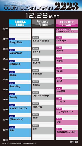『COUNTDOWN JAPAN 22/23』タイムテーブル発表 年越しアクトはフォーリミ、ジェニーハイ、-真天地開闢集団-ジグザグ