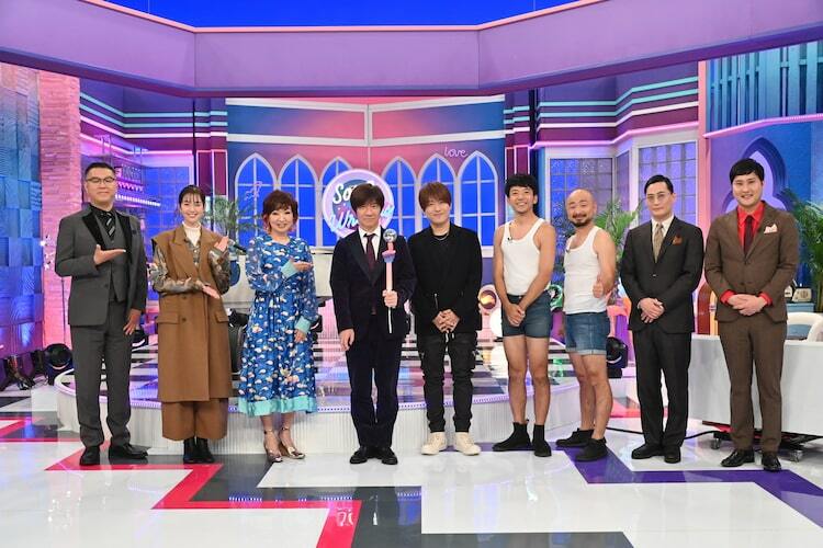「内村と相棒」の「名曲誕生!? 誰でもソングライターズ」に出演する(左から)シソンヌ長谷川、佐藤栞里、清水ミチコ、内村光良、小渕健太郎、どぶろっく、きつね。(c)フジテレビ