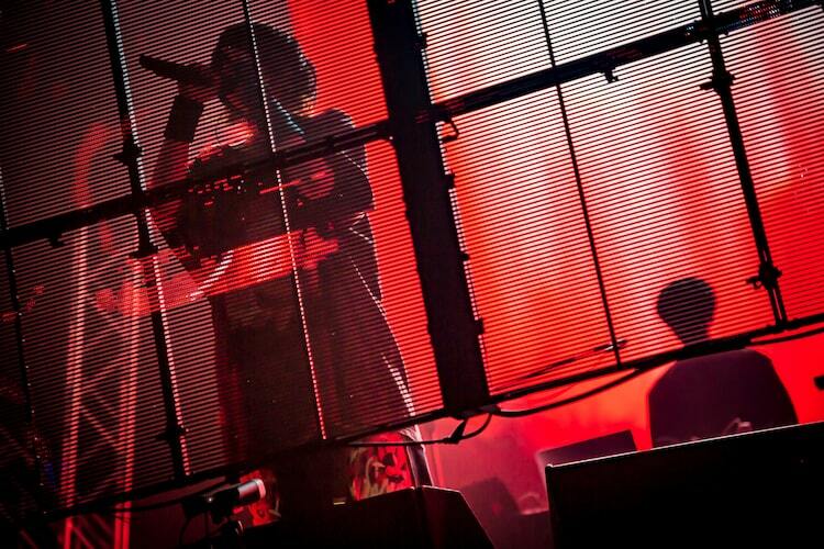 1曲目に奏でられたのは、DUSTCELLが初めて発表した楽曲「CULT」。Misumiのトラックとバンドの生演奏、EMAの歌声がグルーヴィに響き渡る。さらに2人は最新ミニアルバム「Hypnotize」より「不成者」、Misumiのソロ曲「オルターエゴ」といったアッパーなナンバーで序盤から観客のテンションを引き上げた。この日の多くの観客はDUSTCELLのロゴの形をしたペンライトを振りながらライブを観賞。照明演出や、スクリーンの映像演出とシンクロするようにペンライトの色を変え、会場に一体感を生み出した。