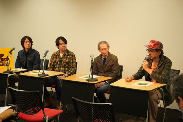 続いて、事務局の推薦枠で出演する、いーはとーゔから戸谷大輔(Vo / G)、菊地芳将(B / Cho)、本フェス初出演となる民謡クルセイダーズの田中克海(G)が登場。麻田とも会話を交えながら、それぞれがこの『ハイドパーク・ミュージック・フェスティバル』出演への思いを寄せた。