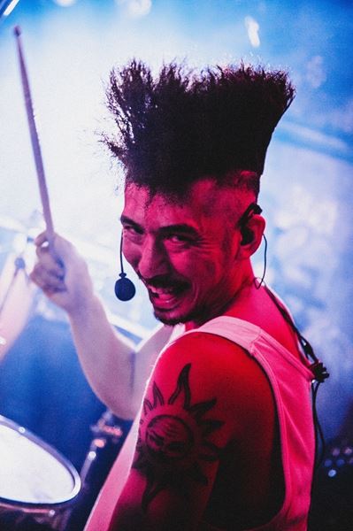 「声出せるらしいんで、そういう曲やります!」とタナカユーキ(Vo/Gt)が言うと、SPARK!!SOUND!!SHOW!!(通称:スサシ)は「GODSPEED」で勢いよくスタート。電子音が飛び交う中、フィジカルを揺さぶる演奏に加えて、合唱パートでも会場を焚きつけていった。イチロー(Ds/Cho/169)のドラムが激しさを増すと、「SCAR」へ。タクマ(Syn/Gt/Cho)のヘヴィなギターも楽曲の邪悪さを際立たせ、こちらの意識を掻き回してくる。