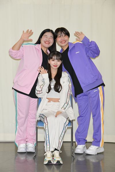 川口が憧れの存在であったため、オファーが嬉しかったと語ったのはよしこ。3人のレッスン中のエピソードとして「(川口の)顔が小さすぎて、ウチらが前に出ているように見えちゃう。振り付けの先生が首をかしげていました」と笑わせる。ただ、川口にひとつ言いたいことがあるようで「ダンスレッスンをやっていると、ゆりなちゃんがちょくちょく汗拭きシートを渡してくれて……“私って臭いのかな?”って」と述べて笑いを誘うと、川口が否定しながら大笑い。そこに、まひるが「優しさだよね」とフォローを入れ、仲の良さがうかがえるやりとりを見せた。