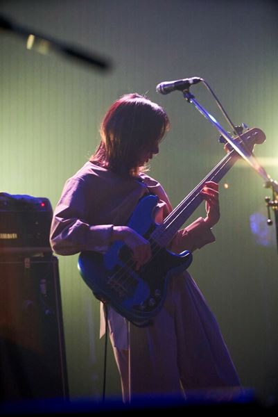 そしてリーガルリリーのステージへ。たかはしほのか(Vo/Gt)のフィードバック・ギターに導かれたのは「GOLD TRAIN」。海(Ba)、ゆきやま(Ds)による疾走感をたたえたグルーヴ、そして、凛とした強さと繊細な浮遊感を内包したメロディ。ライブが始まって数分で3人は、このバンド特有のサウンドスケープを描き出してみせた。ダークな音像とポップな広がりが同時に伝わる「東京」もそうだが、リーガルリリーの音楽は聴く者の想像力を強く刺激してくれる。その“効果”がいちばん強く表れるのはやはりステージの上だ。