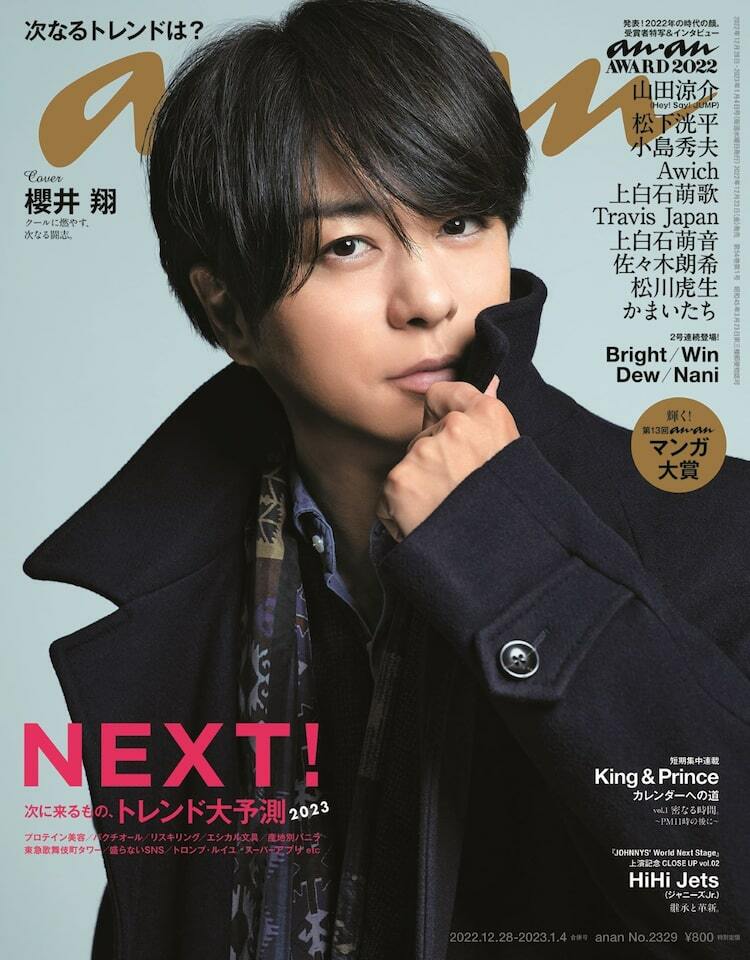 主演ドラマ「大病院占拠」が1月から放送される櫻井は、同作への意気込みをはじめ、2022年の振り返り、来年の野望などを語った。特集は次なるトレンドをanan独自の視点で予測する「NEXT!2023」。映画監督の是枝裕和、脚本家の野木亜紀子の特別インタビューも掲載された。