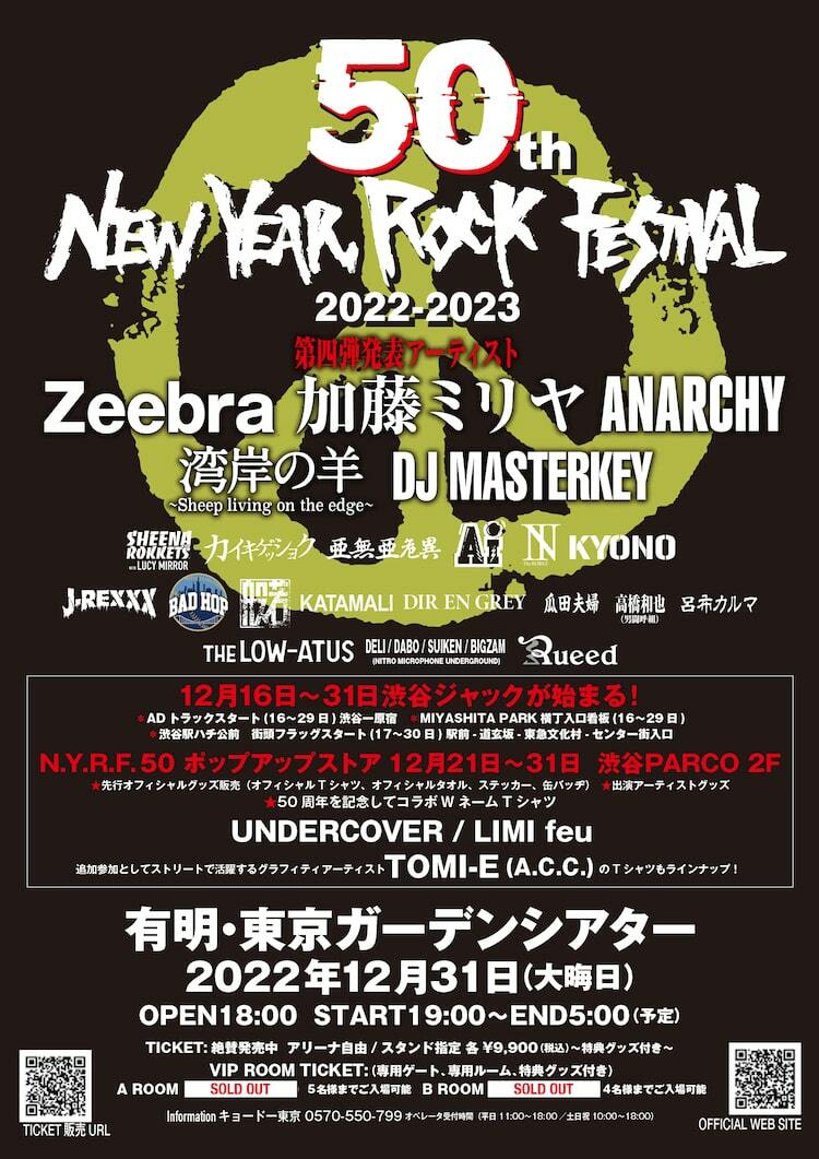 「ニューイヤーロックフェス」にANARCHY、Zeebra、加藤ミリヤら出演決定