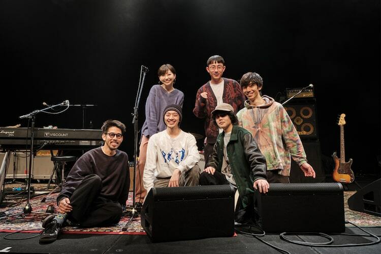 ライブもいよいよ終盤という頃に4人が「矜羯羅がる」を披露し始めると、突如として鈴木真海子(chelmico)とSkaaiが登場。2人は「矜羯羅がる」に鈴木の楽曲「Blue」を織り交ぜ、儚げなウィスパーボイスとキレのあるラップでオーディエンスを魅了した。そのまま6人によるコラボ曲「tokyo」がパフォーマンスされると、撮影OKの合図とともに掲げられた無数のスマートフォンの光が、まるで上空から見下ろした東京の街明かりのように煌々とした輝きを放つ。芳醇なアンサンブルに荒谷、鈴木、Skaaiの3人が穏やかながらも熱のこもった歌声を乗せ、本編が締め括られた。