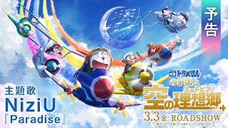 併せて、同曲が流れる最新予告映像も公開された。ひみつ道具の飛行船タイムツェッペリンで理想郷を探す旅に出たドラえもんたちが、ついに見つけた誰もがパーフェクトになれる夢のような楽園パラダピアを満喫する姿が映し出され、後半では楽園に危機が迫り、ドラえもんたちやパラダピアで出会ったソーニャがどうなってしまうのか、気になる映像となっている。