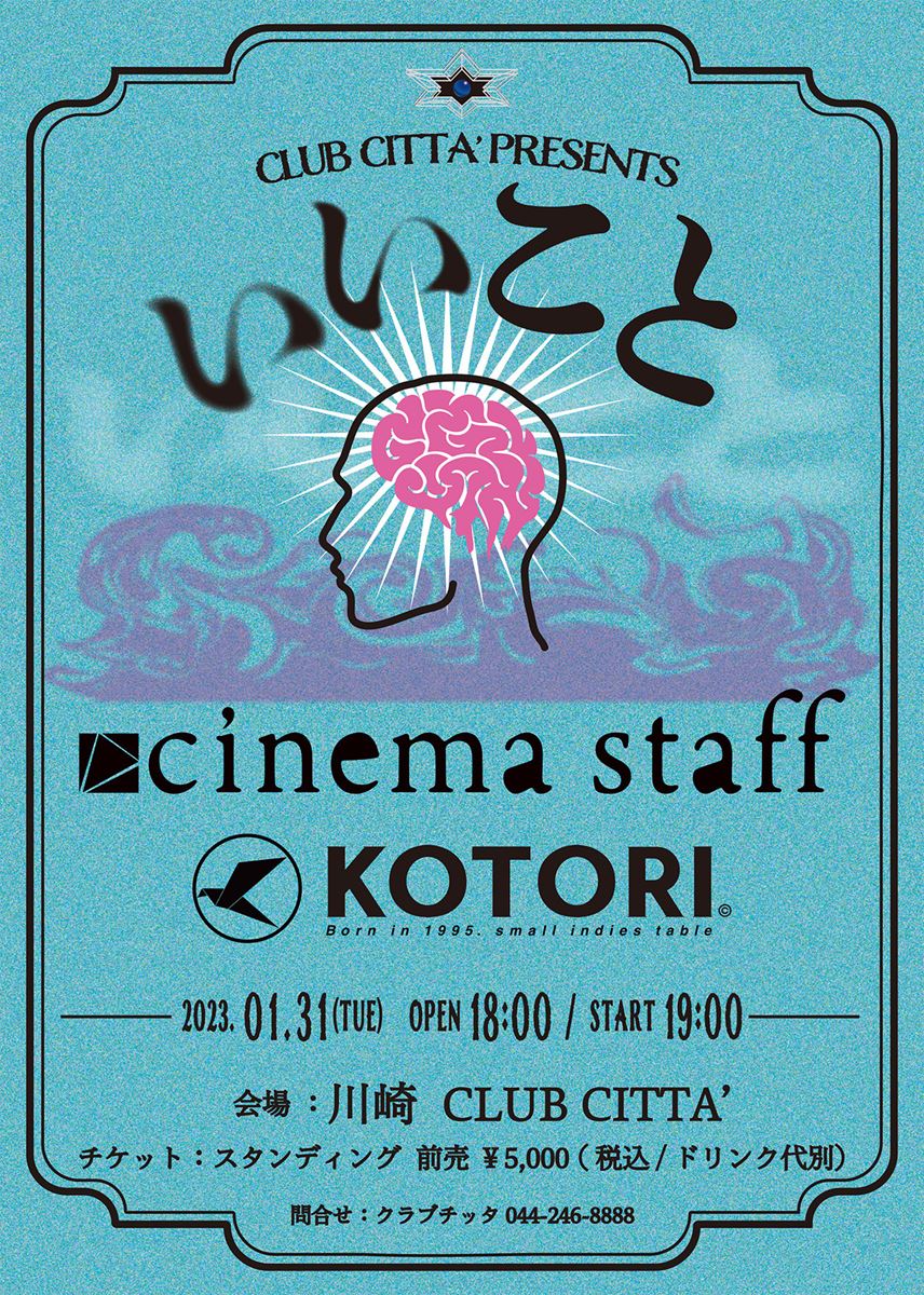 CLUB CITTA’主催のライブイベント『いいこと』第2弾にcinema staff、KOTORIが出演