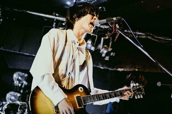 双葉(Vo/Gt)の透き通る声での弾き語りから。切なく始まった『大人になったらさ』だが、イントロではりぃこ(Dr)が元気に叫ぶ。綺麗なコーラスワークをする姿や、小さな手でするするとギターソロを弾きこなすメンバーの姿に見惚れる。「行けるか下北ー!!」と大声で煽る双葉にフロアが応えるように拳を突き上げる。2曲目の『バンドマンきらいかも』では観客が曲に合わせて手拍子を鳴らす。サビでのシンガロングが楽しげで、ライブの勢いを加速させた。