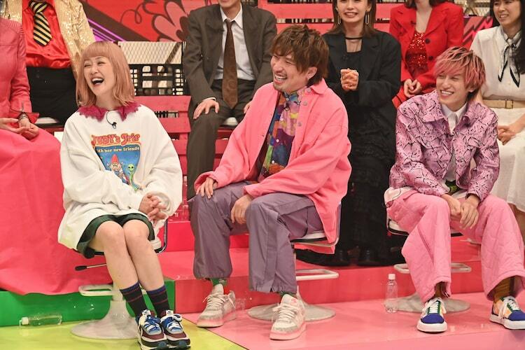 MCの(手前左から)松嶋尚美とEXIT。(c)フジテレビ