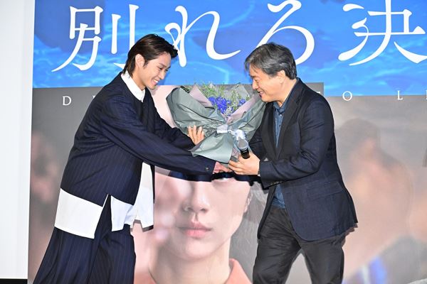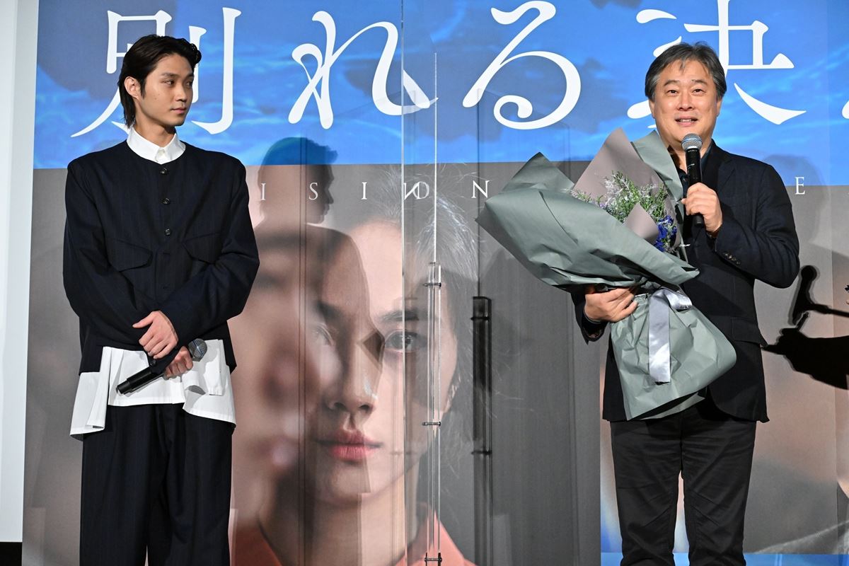 中盤には磯村が監督への花束を抱えて登壇。磯村は自身の出演作『PLAN 75』でパク監督と同じく第75回カンヌ国際映画祭に参加しているが、この日が念願の初対面となった。10代の頃に、パク監督の映画『オールド・ボーイ』を見て衝撃を受けたという磯村は「あの作品を見たときに“俺はこういう作品に出るような俳優になるんだ”と思ったくらい衝撃を受けました。それを手掛けた監督とお会いできているなんて本当に夢のよう」と感無量。これにパク監督は「私も今日こうしてお会いできて嬉しいです。今後磯村さんは大俳優になって簡単にはご挨拶できなくなると思うので、お会いできてよかった」と語り、当の磯村は「そんなことを言われたら……頑張るしかない!」と自らに気合を入れていた。