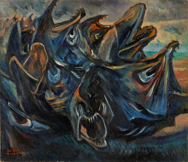 小口一郎《「鉱毒に追われて」より 1.治水か破水か》1971-73年 小口一郎研究会蔵