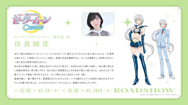 すべて見る『劇場版「美少女戦士セーラームーンCosmos」』の公開が前編6月9日(金)、後編6月30日(金)に決定。さらに新たなキャラクター“セーラースターライツ”のキャストが井上麻里奈、早見沙織、佐倉綾音に決定し、スペシャルPVが公開された。