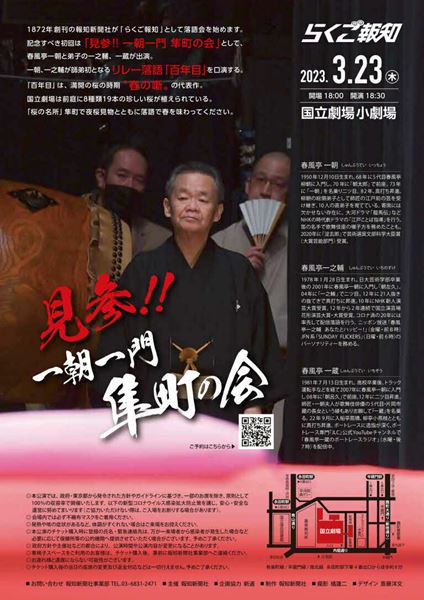 本公演は、1872年に創刊し昨年150周年を迎えた報知新聞社が「らくご報知」として始める落語会。記念すべき第1回公演に出演するのは、「チケットの取れない落語家」として乗りに乗っている春風亭一之輔と、その師匠である春風亭一朝。