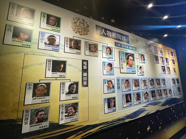 場内にはドラマの概要や登場人物の相関図などがわかるエリアや、ドラマに登場する衣装、小道具などの展示、デジタル等身大パネル、番組制作や美術の舞台裏を見ることのできる一角も登場。