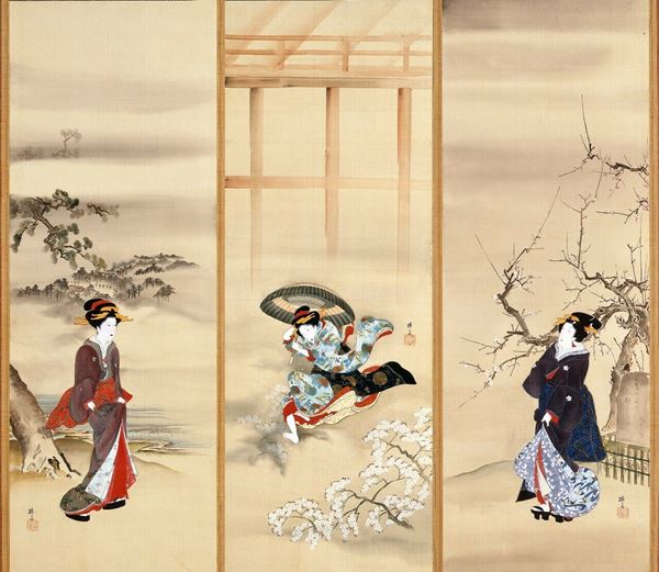 なお、『美しい人びと』展は、前期・後期で展示替えがある。上記のうち、松園の《春宵》と観山の《山寺の春》は、4月16日(日)までの前期展示となる。