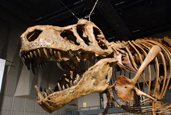 「守」の代表は、もちろん鎧竜のズール。対する「攻」の恐竜は、ズールと同時代に生きたゴルゴサウルスだ。この肉食恐竜が属するティラノサウルス類は、白亜紀後期に急激に巨大化し、アジアと北アメリカの生態系で、食物連鎖の頂点に上りつめた。今回、ゴルゴサウルスの全身復元骨格もズールの全身復元骨格と相対するように展示。当時の恐竜たちの「攻・守」を臨場感ある展示で体感できる。