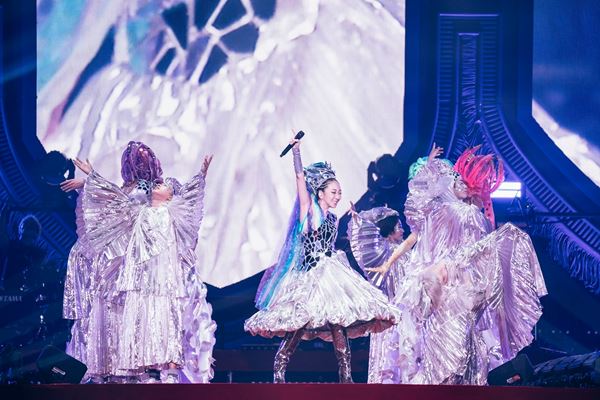 超満員の横浜アリーナのオーディエンスをいきなり驚かせたオープニングは、今のMISIAとデビュー当時の原点を同時に感じさせるものだった。まず登場した4名のドラァグクイーンはオクトパスを想起させるドット柄のついた衣装を身に纏っていた。そして巨大なワシの背に乗って現れたのはMISIAだ。エレクトリックなSEが響く中、まるで地球そのものがクラブになったかのような演出で「Everything」の一節を歌い出した瞬間、フロアからはため息とも歓声ともつかない声があふれた。そう、大阪公演よりオーディエンスの声出しが解禁されたのだ。