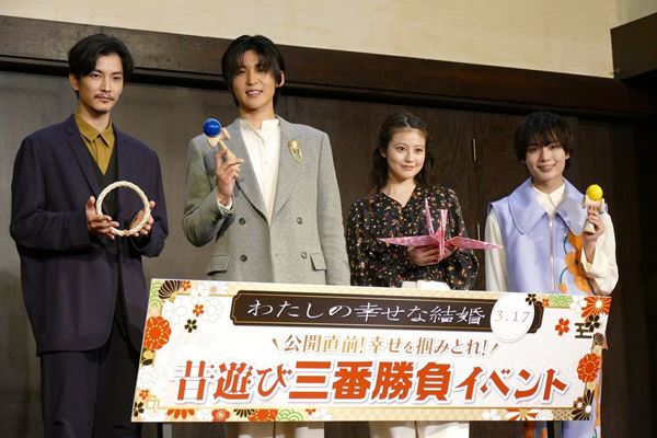 すべて見る顎木あくみによる大ヒット和風ファンタジー小説を実写映画化した『わたしの幸せな結婚』の公開直前イベントが2月27日(月) 、都内で行われ、本作が映画単独初主演となる目黒蓮(Snow Man)、今田美桜、渡邊圭祐、大西流星(なにわ男子)が出席した。
