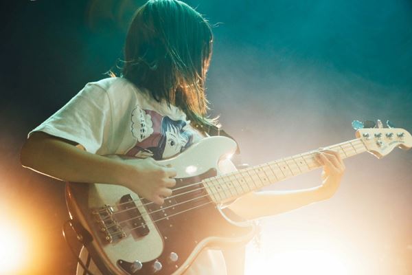 「最後の曲です」と奏でたのは「エンドロール」。映画『グリーンバレット』の主題歌として書かれた1曲。気だるく始まり、目の前が開けて、急に弾けてノリノリに。しーなちゃんはサビの歌い回しにキュートさをのぞかせ、あさかはベースを弾きながら跳ねていた。