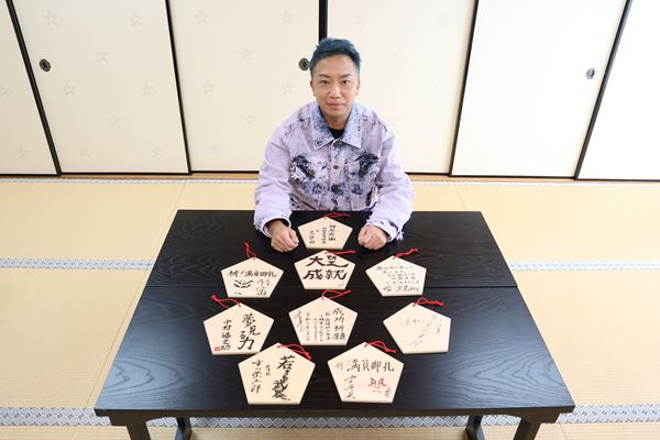 神社には、出演者(市川猿之助、坂東巳之助、中村壱太郎、尾上右近、中村隼人、中村児太郎、中村福之助、中村鷹之資、市川染五郎)が書いた絵馬を猿之助が代表して奉納。京都・南座『三月花形歌舞伎』に出演中の尾上右近、中村鷹之資もその場に駆けつけた。