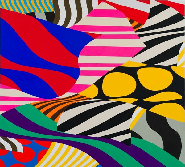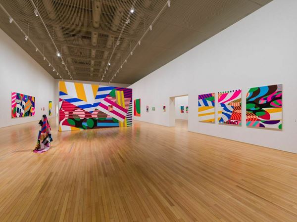 ストライプや水玉といった単純な色と形の組み合わせによる模様が波打ったり歪んだりしながら配置される作品は、絵画に対する飽くなき探求と言える一方で、その色彩や形態への取組みは、立体作品やインスタレーション、ファッションブランドとのコラボレーションや映像作品といった多彩なジャンルにも展開されている。
