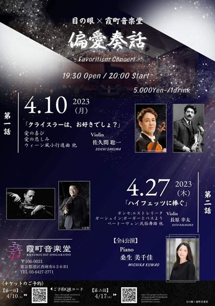 ヴァイオリニスト佐久間聡一とピアニスト桑生美千佳によって企画された全4回のこのプロジェクトは、今彼らが演奏したい作品や共演者を集めた魅力的な内容だ。
