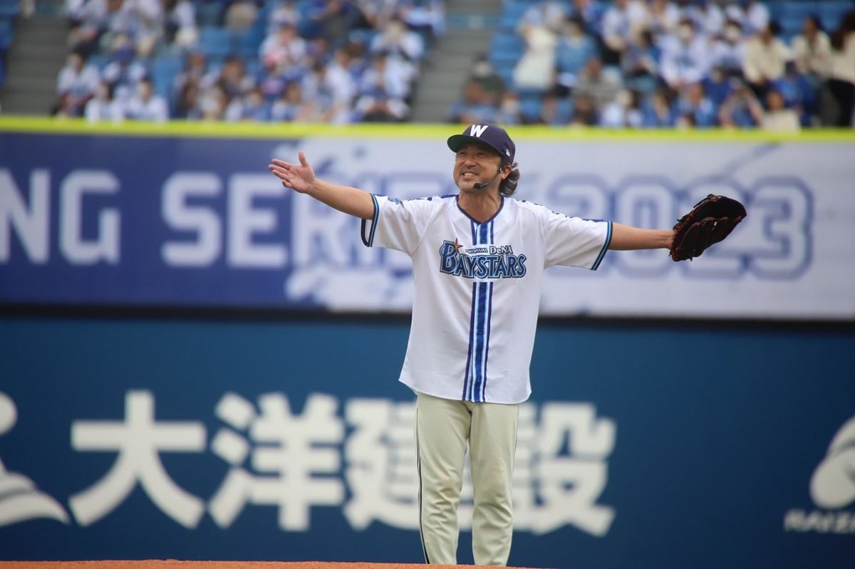 WOWOW『ドラフトキング』出演のムロツヨシ&宮沢氷魚がセレモニアルピッチに登場
