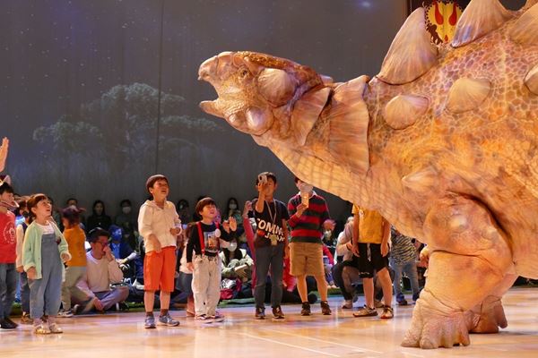 金丸氏は「やっと、鎧竜の1種を完成させることができました。私たちにとっては、記念すべきこと」と完成度に自信を示し、「僕らも作ってみないと、どんな恐竜にできあがるか分からないんです。これからも、体験でしか伝えられないことを追求しながら、皆さんには多種多様な恐竜たちの世界、生き物の多様性の素晴らしさを体験していただければ」とアピールした。今回は、アンキロサウルスの登場パートで、子どもたちが実際にアンキロサウルスを間近で観察できるコーナーもあり、“体験”の言葉がふさわしいイベントになりそうだ。