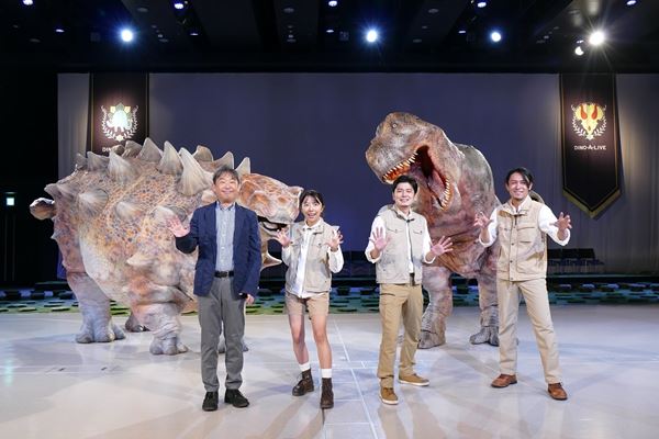すべて見るゴールデンウィークの恒例イベント『DINO-A-LIVE ディノサファリ(DINO SAFARI) 2023』が、4月27日(木)から5月7日(日)まで、渋谷ヒカリエ9階のヒカリエホールにて開催される(全33公演)。開幕を前に、登場する恐竜たちを生み出している株式会社ON-ART社の代表取締役・金丸賀也氏をはじめ、日替わりで公演を盛り上げるナビゲーター役の中村麻里子、山本匠馬、高山猛久が取材に応じ、見どころと意気込みを語った。