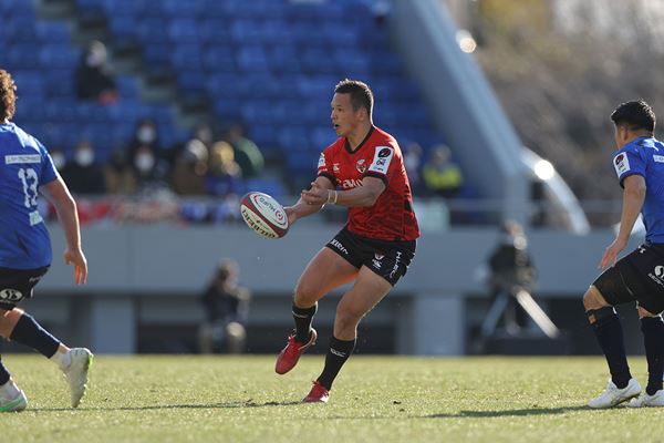 「去年は自分でいこうと思っていましたが、今季は11・14番にどれだけチャンスを作らせるかを心掛けています。去年のイーグルスはWTBがあまりトライ取るシーンが少なくて、それは自分やジェシーが内側でボールを持ち過ぎて、なかなかチャンスを与えられなかったという反省点があったので、今季はWTBのトライシーンが増えて、人を使うというのを意識しています」