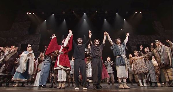 そしていよいよ大千穐楽のカーテンコールは、稽古から半年間、2月5日~5月11日のこの日までの4都市に渡る大ロングラン、82公演を全員で完走したキャストたちの高揚と、感動で登場からすべてがキラキラと輝く涙、涙の渦。思えば本当にこれだけダイナミックなアクションと汗と涙と人が演じる熱量にあふれた舞台が、この期間一度も止まらずに、怪我無く終えられたことが、改めてどれほど大きな奇跡だったかを感じさせる。そこからメインキャストそれぞれの感動の挨拶があった。