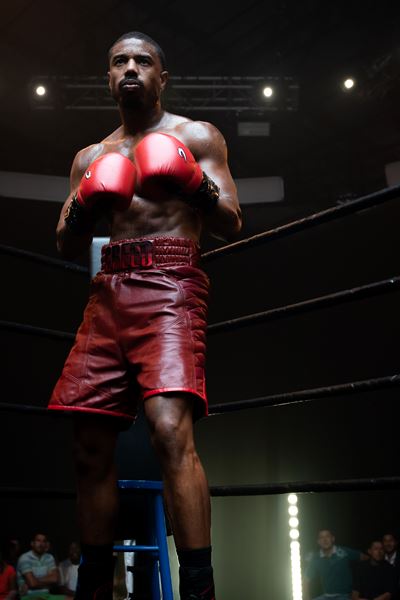 公開された場面写真では、アドニスが赤のボクシンググローブとトランクスで臨戦態勢を整えている姿が写し出されており、その姿は『AKIRA』の金田のトレードマークである真っ赤なスカジャンとパンツ姿を彷彿とさせる。また、スパーリングに臨む幼馴染のデイム(ジョナサン・メジャース)とのメイキングショットも公開。監督のマイケルが、ミニモニターを手に映像をチェックする様子が捉えられている。