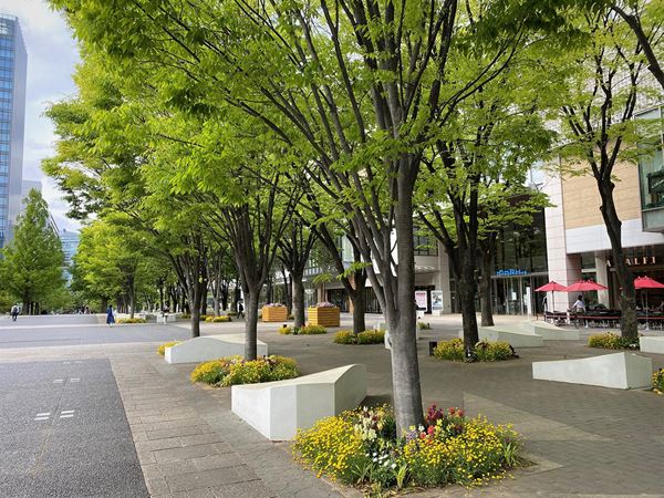会場は、みなとみらい21地区の中心部に位置するグランモール公園 『美術の広場』。 大型商業施設「マークイズ みなとみらい」に隣接した緑の多いエリアだ。