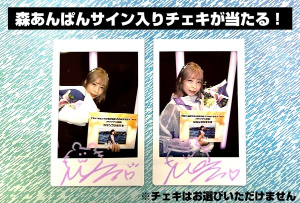 5月31日のグランプリ授賞式のイベント中に森あんぱんエフェクトを使ってくださった方の中から抽選で4名様に森あんぱんサイン入りチェキをプレゼント。応募方法はNeoMe公式Twitterをチェック。