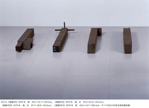 さらに、人の背丈ほどある角柱に植物の構造を想像させる《Daisy I》全10点とともに、ひと続きの空間で相対的に展示。この2作品を考える糸口として、自身と対象との距離を測るものさしとして通底する概念となる《振動尺》シリーズ、重要な素材のひとつとなる硫黄を用いた作品ほか、ドローイングや資料なども併せて約100点で構成される。